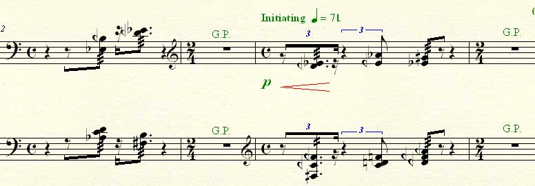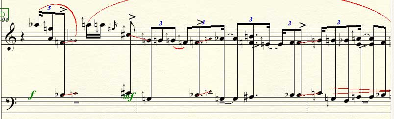 Sample of the score. Original as the composer sent to Kjell Tore Innervik and edited version done during the week by Kjell Tore Innervik after talks with the composer about makeing it easier to read and possible to play.