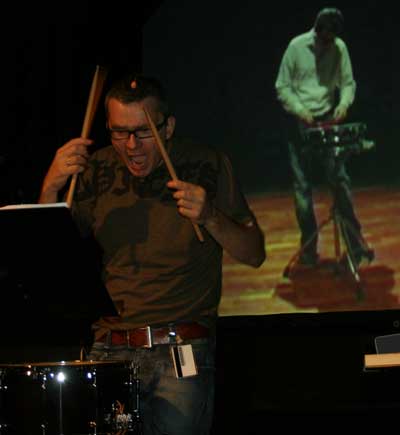 Erik's perfomance piece "Head On" f or drummer, playing on head.