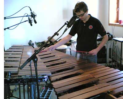 One quartertone-tuned Premier marimba, 4 octaves, with customized legs, used as an extension for the Adams 5-octave Artist Classic MAHC55 marimba. The bars are of different width and length, and the instruments had very different sound quality. It was difficult to get used to the differences between the instruments.