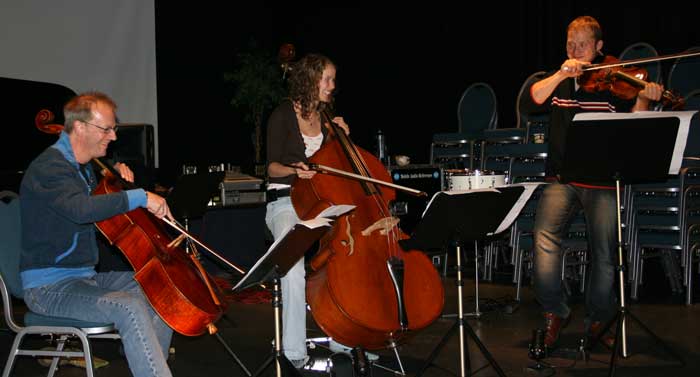 yvind and Ingvild responding to Kjell Tore instructing and playing the Styacks of Music by Oyvind Torvund. |