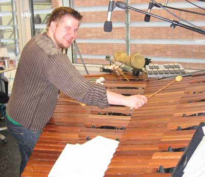 Anders playing excerpt from Henrik Skram's "Intrata", a piece for quartertone marimba in mirror form.