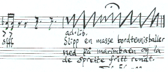 | Philip Sande wrote the etude for the workshop at the composition depeartment at the Norwegian Academy of Music. The piece was performed by matertudent Sigrun Gomnes. |