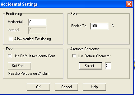 Mark the bar of music you want to work with. Double-click the square on the note you want to alter. Set font to Maestro Percussion , and go to alternate character. Click select, number 66 for quartertone flat and 181 for quartertone sharp. Click OK and the accidental will be altered. Finale has no quartertone playback option that I'm aware of at present.