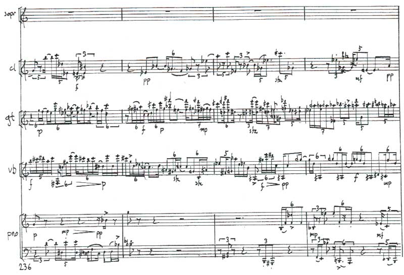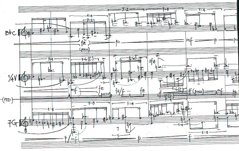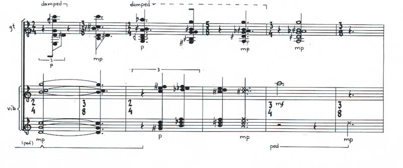 Chris Dench: Blood music, 2005. Bb Clarinet, 7strings, electric-guitar and quartertone-vibraphone.