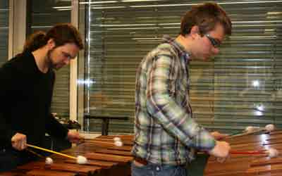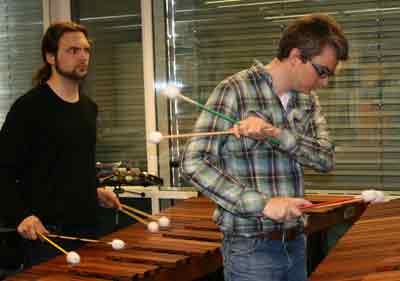 Hakon Stene and Kjell Tore Innervik rehearsing the Rob Waring piece, May 2007.