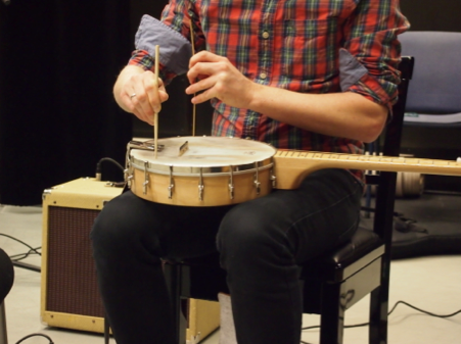 Jeg skulle onske vi hadde filmet den improvisasjonen! Men jeg fant bilde av Ivars dans med trommestikker pa banjo i stedet.