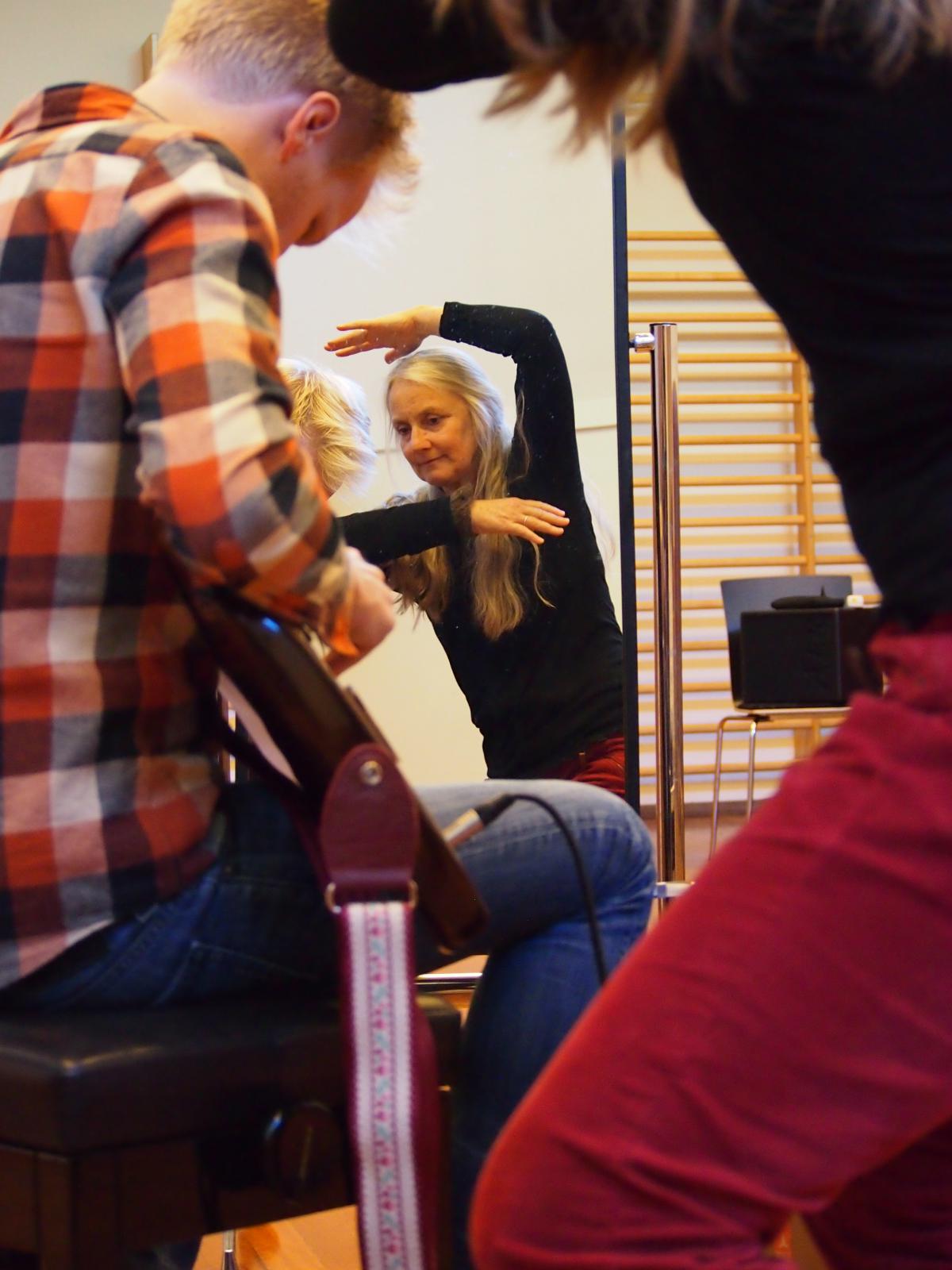 Hva skal rommet fylles med? Hvilket potensiale har rommet? Hvordan opplever jeg de ulike plasseringene og vinklene jeg kan fa til i rommet? Hvor er senterpunktet, rommets "hot spot"? Hva gjor det med meg som danser nar rommet fylles med lyd? Kan jeg oppleve lyden som forflytning og avstand, som et lag jeg kan bruke i musikken, noe jeg kan bruke musikken til, aktivt? Kan jeg se musikk og dans som likestilte medier nar jeg tenker pa rom?